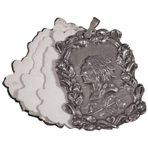 Sterling silver note holder with high relief Native American image, bessel attached for hanging. Excellent condition. 2 X 2 1/2 inches.