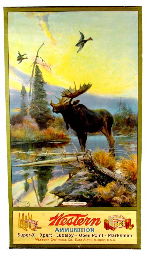 Western Ammunition Paper Poster. Entitled "The Warning". A couple of small tears at left edge and pinholes bottom center otherwise excellent condition. 16 3/4 X 30 inches.