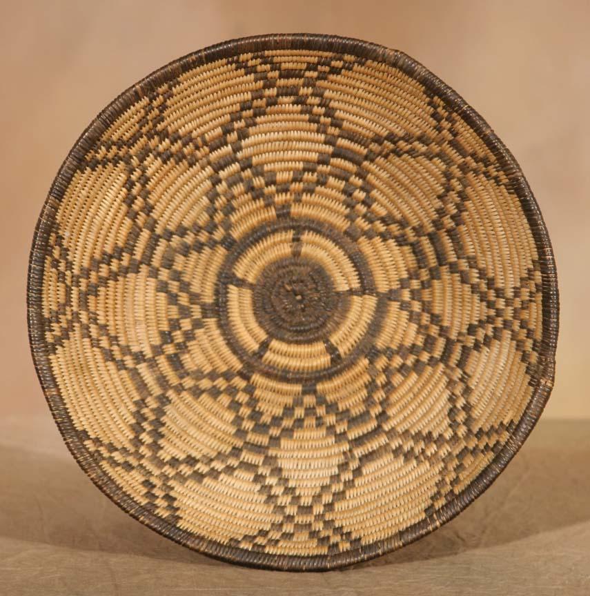 Western Apache Basket. 8 ¾" diameter, 2 ½" deep. Circa 1930s. (est $500-700). For condition reports please visit: www.auctioninsantafe.com/cr2011.pdf