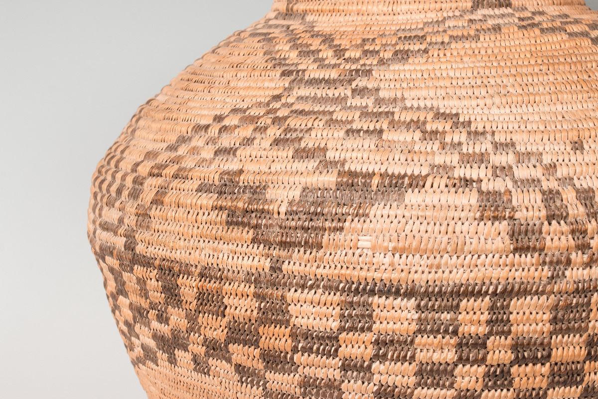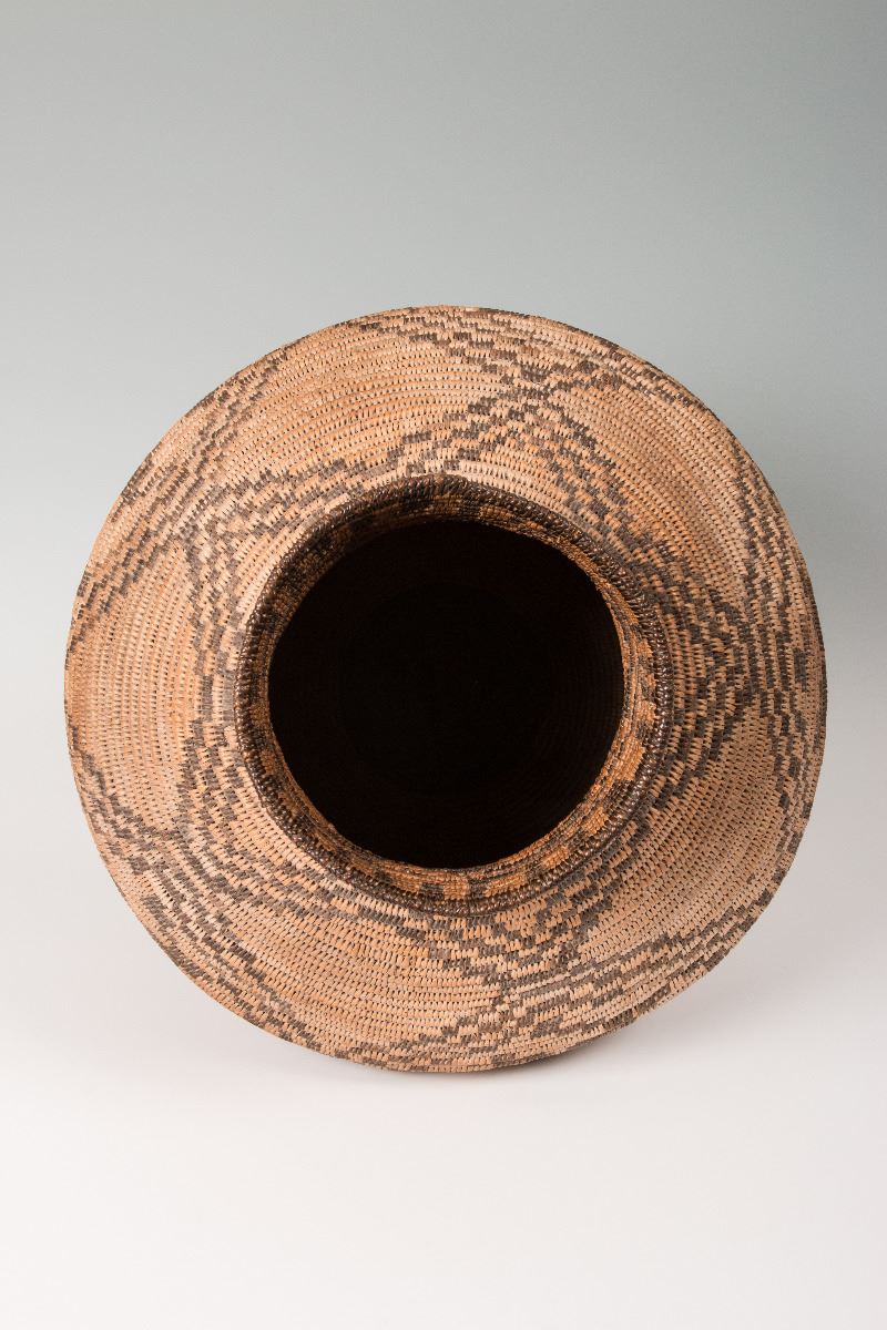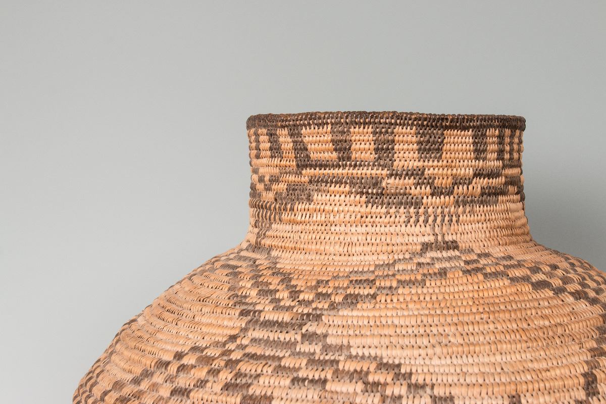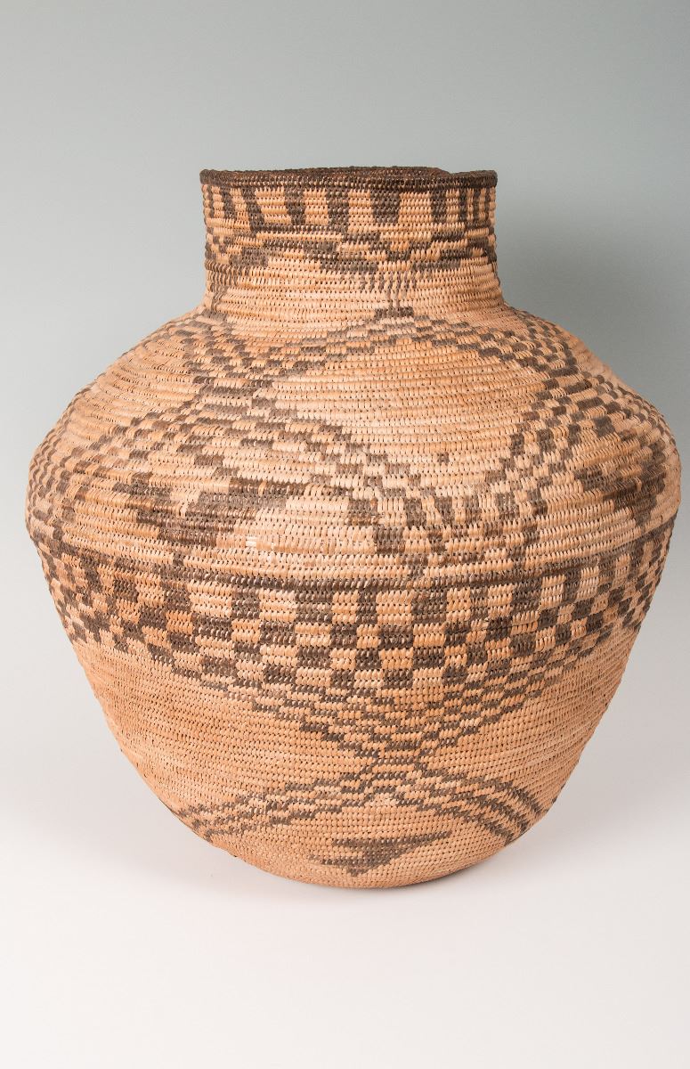 Western Apache Olla Basket. 18" x 17". Fine geometric designs. Circa 1900.