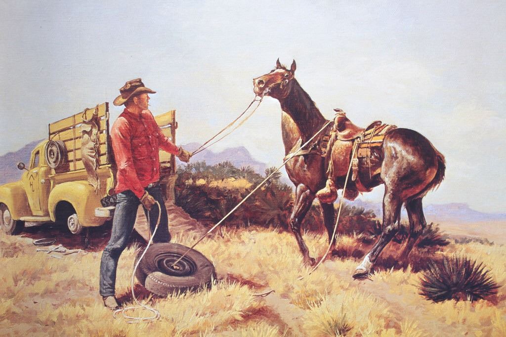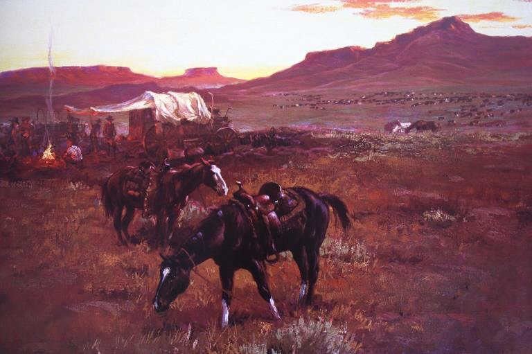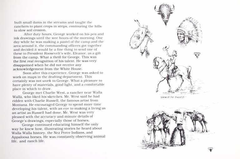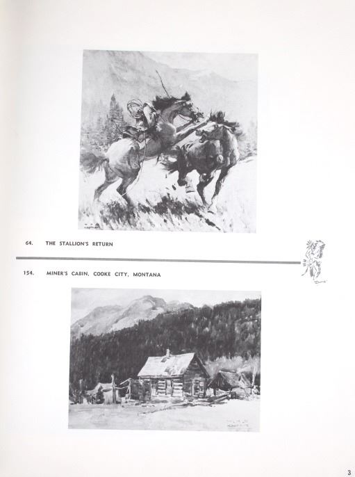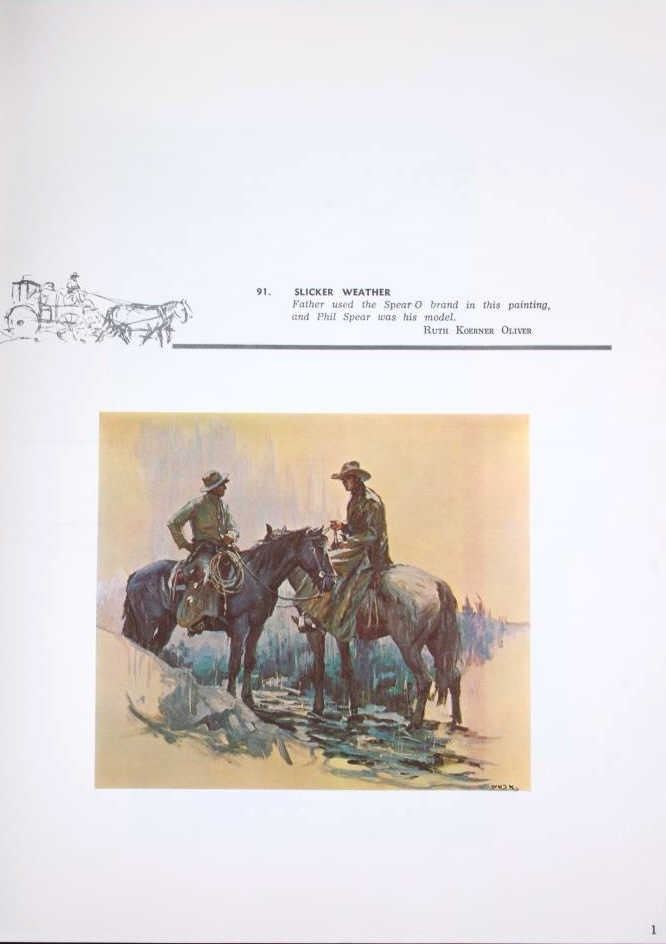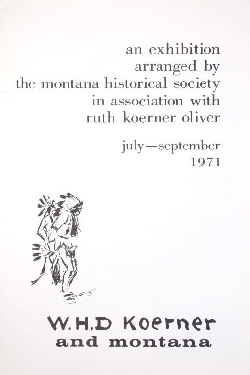 Lastly is included the catalogue of 1971 exhibition of the works of W.H.D. Koener, a noted illustrator of the American West whose works became known to new audiences when his painting, nicknamed A Charge to Keep, was used as the cover image for the ghostwritten biography by the same name by George W. Bush. This painting, which hung in the Oval Office during the Bush presidency was of special interest to journalists due to the interpretation given by Bush of the painting's meaning in light of the meaning and title attached to the painting by the artist.