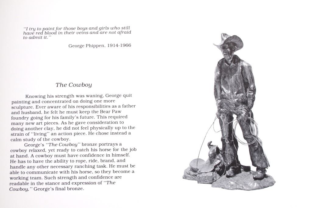 For your consideration is a collection of Western Artists books (3), including "George Phippen the Man, the Artist" by Louise Phippen, a signed Special Limited Edition First Printing 1985, published by Palph Tanner Associates, Inc, Prescott, Arizona. Phippen was an American sculptor and painter from Arizona. He was the co-founder and first president of the Cowboy Artists of America. He is the namesake of the Phippen Museum in Prescott, Arizona. Over the course of twenty years, Phippen did approximately 3,000 works in his brief career. He was a sculptor and painter in representational style of western genre, figures, horses and cattle. His work included the bronze sculpture Cowboy in a Storm.