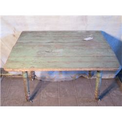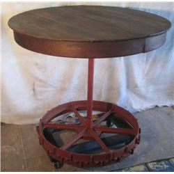 BASE OF SEATS ARE ANTIQUE STEEL CADILLAC CAR WHEELS WITH WOOD SPOKES