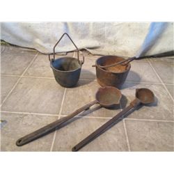 Antique Cast Iron Miners Pots And Ladles  For299 - Antique Cast Iron Miners Pots And Ladles For