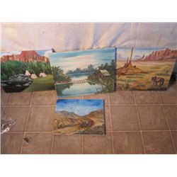 4 Unframed Oil Paints With Western Themes303 - 4 Unframed Oil Paints With Western Themes
