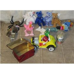 Box Lot Of Ty Beanie Babies With M&m Car