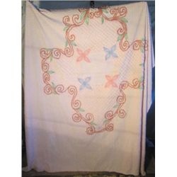 Handmade Pretty Green Quilt With Flowers317 - Handmade Pretty Green Quilt With Flowers