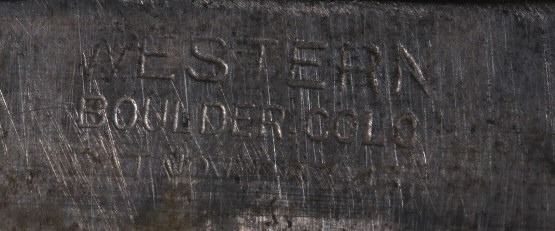 For your bidding pleasure is this rare original Western Knife & Hatchet Removable Handle Set with sheath dating to circa 1930-1932. The knife and hatchet are both a rare double tang mechanism which locks into the celluloid mother of pearl and nickel handle. Both the knife and hatchet are stamped “Western Boulder Colo.” with a patent or Pat. No. 496743. The set was only made for two years with this grip material and patent date making it very rare. The set is complete and comes with the tooled basket weave leather sheath, knife blade, hatchet and handle. The mechanism works wonderfully and allows the user to quickly interchange the excellent hunting knife and camp axe with ease. These combination sets are very rare. The measurements for this piece include 9 1/4" for handle and knife blade, for the handle and hatchet blade 11" and the total length of blades in scabbard
