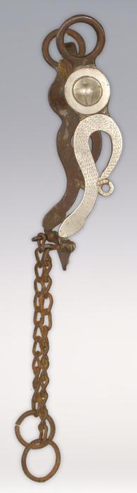 Western Cowboy Iron Bit. 8" long. With silver overlaid rattlesnakes and conchos. Usable condition, 20th century. Condition Report: All metal pieces show light coat of rust. Easily removed. Silver is all in fine condition.