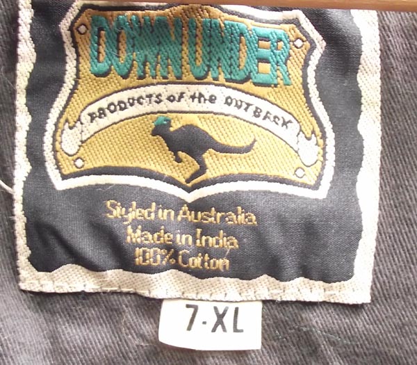Western Down Under Duster Size 7XL. Tag inside reads: ''Down Under, Products of the Outback, Styled in Australia, Made in India, 100% Cotton, 7-KL. Never worn, has been treated. Buyers Pay Actual Shipping and Handling Charges(see terms and conditions for more information).
