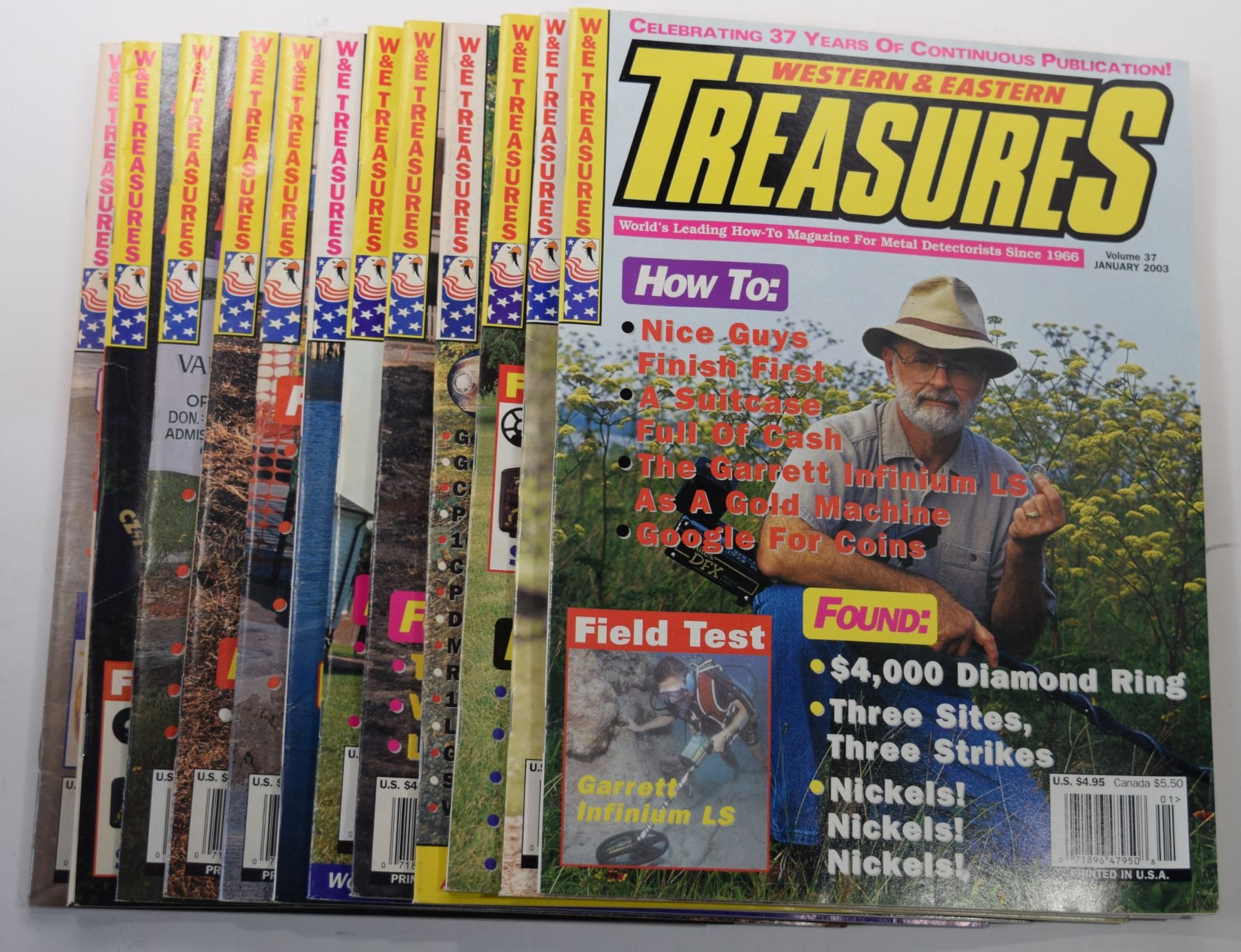 This lot contains issues of the popular treasure hunting magazine: Western & Eastern Treasures for the year 2003. Issues included in this lot: