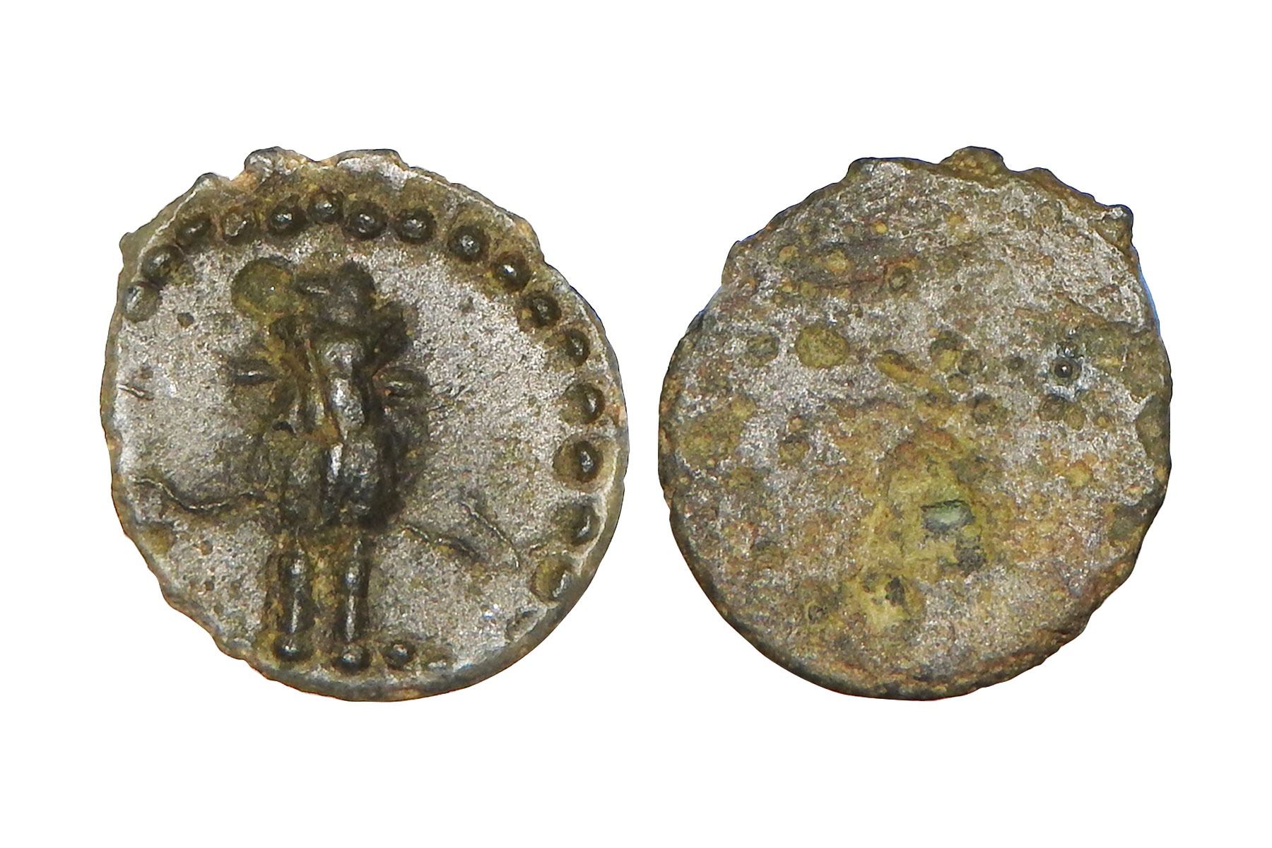 Western Kshatrapas, anonymous and uninscribed 'bull' type Potin coin issued under Damasena or later (235 AD onwards), Fishman 24.8, 1.22 grams.. Obv: bull standing facing. Rev: plain. Extremely fine, Scarce.