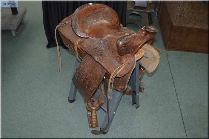 Western Leather Riding Saddle [ Stamped Serial # 650, good useable condition ]