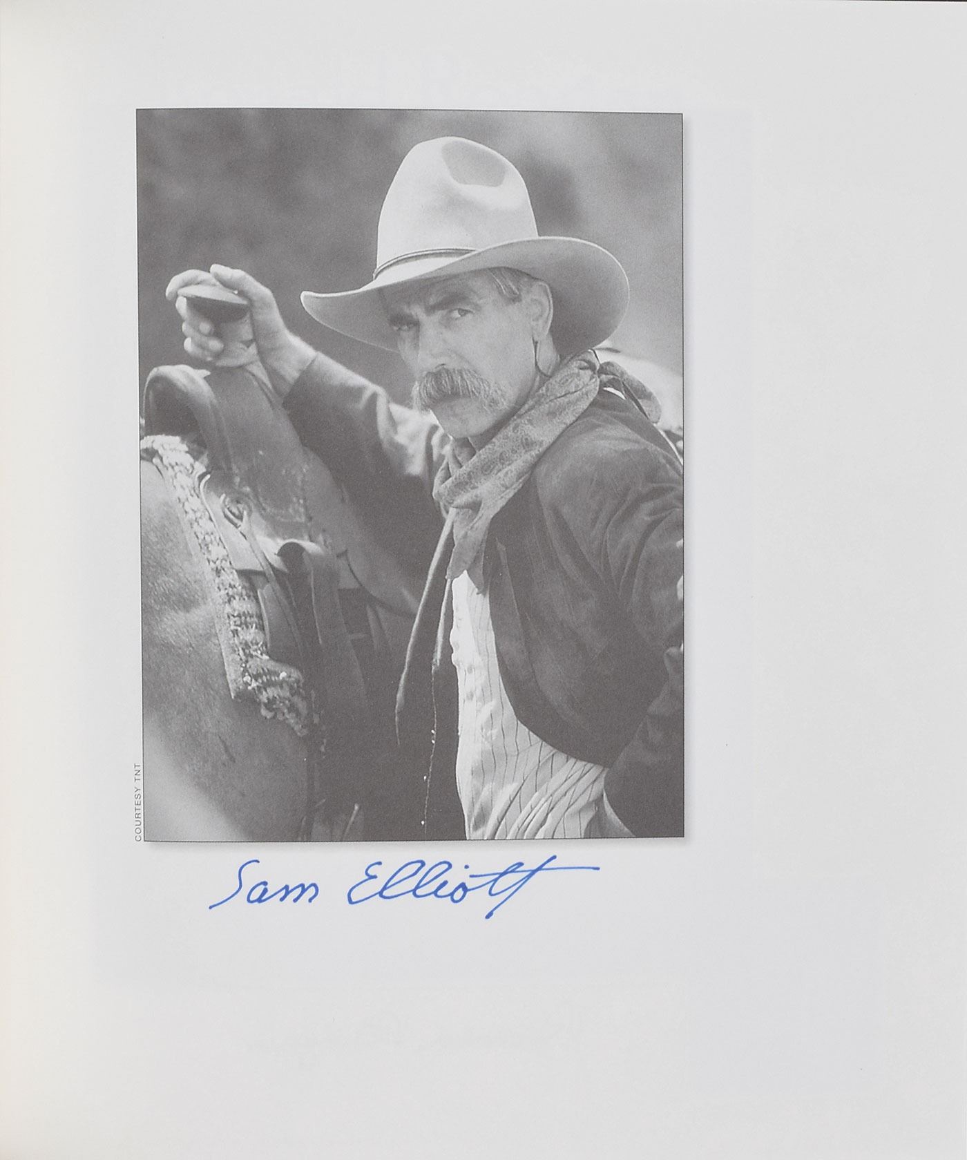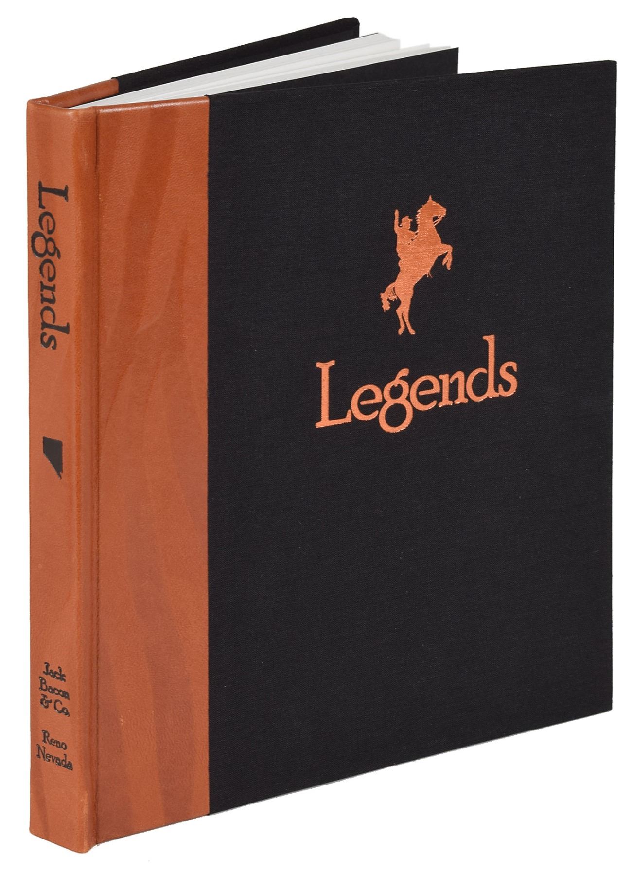 Signed book: Legends. Limited edition, numbered 227/250. Reno, Nevada: Jack Bacon and Company, 2006. Clothbound hardcover with slipcase, 9.25 x 9.75. Signed on their respective pages in blue felt tip by over 40 Western stars, including: James Arness, Eddy Arnold, Irene Bedard, Powers Boothe, Brooks and Dunn, Red Buttons, Harry Carey, Jr., Roy Clark, Lacy J. Dalton, Charlie Daniels, Jack Elam, Sam Elliott, Rhonda Fleming, Lou Glanzman, Lee Greenwood, Monte Hale, Emmylou Harris, Harry Jackson, Adam Jahiel, Stuart Kaminski, Thomas 'Doc' Kaminski, Frankie Laine, Trini Lopez, Barbara Mandrell, Kevin McCarthy, The Oak Ridge Boys, Hugh O'Brian, Riders in the Sky, Julie Ritter, Dale Robertson, Mickey Rooney, The Statler Brothers, Mel Tillis, Randy Travis, Eli Wallach, Dennis Weaver, and Adam West. In very fine condition. Accompanied by a certificate of authenticity from the publisher.