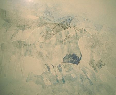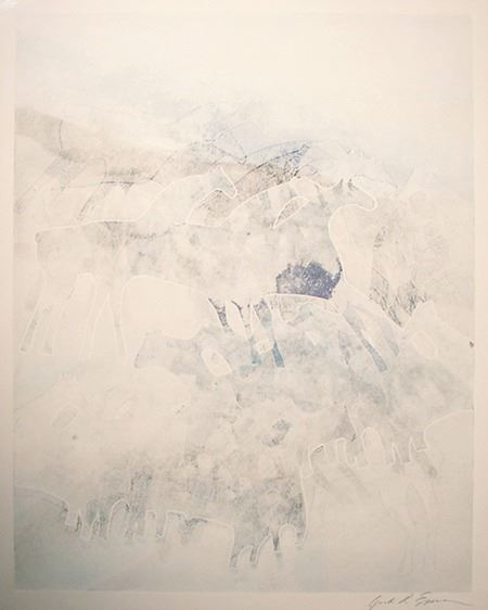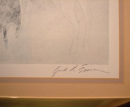 Ca. 1970s, Silhouette lithograph titled "Wild Horses No Indians," signed. 31-1/2" x 26" (37-1/2" x 31-1/2" framed)