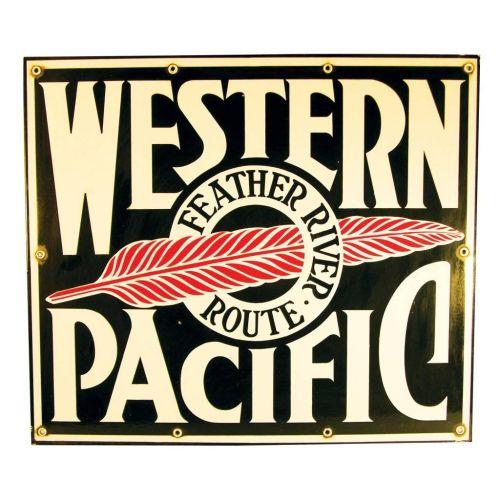 Western Pacific Feather River Route Porcelain Sign. Near mint condition. 26 X 22 1/2 inches.