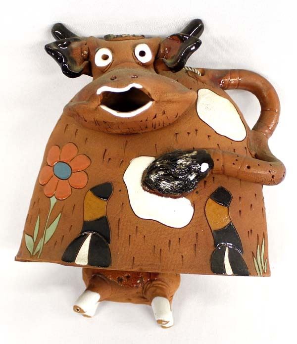 Western Pottery Figural Cow Windchime, measures 6'' x 7'' x 4.5''