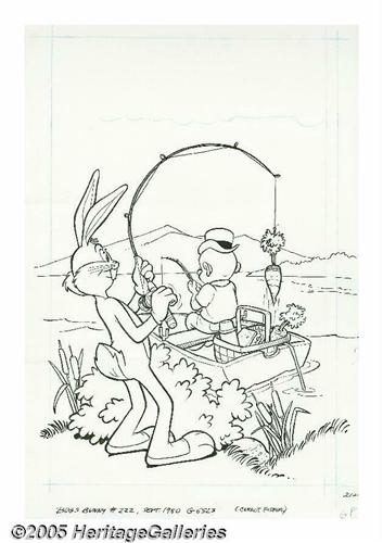 <B>Western Publishing Artist - Bugs Bunny Cover Original Art, Group of 4 (Gold Key, 1979-80).</B></I> Bugs Bunny yuks it up with his pals Elmer Fudd, Porky Pig, Tweety, and Sylvester on these covers done for <B>Bugs Bunny</B></I> #207, 220, 222, and 223. The image area of each cover measures 10" x 15", and the art is in Excellent condition.<I>From the Random House Archives</B></I>.