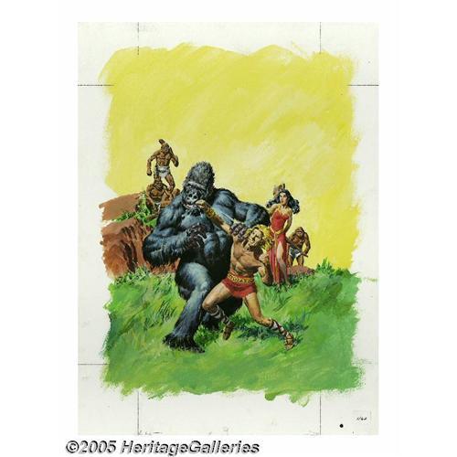 <B>Western Publishing Artist - Dagar, the Invincible #12 Cover Original Art (Gold Key, 1975).</B></I> ""Dagar battles a monstrous gorilla in the forest of fear!"" The image area of this acrylic on board slug-fest measures 11"" x 15"", and the art is in Excellent condition. <I>From the Random House Archives</B></I>. <BR><BR><B>Important notice:</B> Heritage usually auctions material at the rate of 200-250 lots per hour. On some occasions eBay Live bid software or the Internet may not be able to keep up with the pace of the auction. We recommend placing a realistic absentee bid now as insurance to avoid disappointment. Occasionally the auctioneer may eliminate or reject an eBay Live bid, and the auctioneer may also reopen a lot after the close of the eBay live bidding (usually because we missed an audience bid), and may reject your bid even if it shows you as the winning bidder. By bidding via eBay Live, you agree that Heritage may award the lot to another bidder at its sole discretion under the circumstances described above or any other reasonable circumstances. Since eBay bids are not shown to us until we open the lot on the floor, we treat those bids just like floor bids. In most cases the floor responds before the eBay bid is presented to us, due to Internet lag time, so for consistency we have made it a policy that floor bids are always considered first over tie eBay live bids. Also please note that all Heritage lots purchased through eBay Live carry a 20% Buyer's Premium. Please make sure you read the Terms and Conditions before you bid. This lot is being auctioned in conjunction with a live floor auction by Heritage Galleries & Auctioneers. All final auction and invoice information will be supplied by Heritage Galleries & Auctioneers, and all other information should be considered preliminary. Lot:3211 <BR><BR><B>Winning Notification and Billing:</B> After the FINAL session in this auction is complete, Heritage will send e-mail and snail mail invoices. This pro