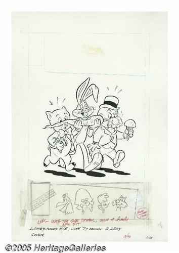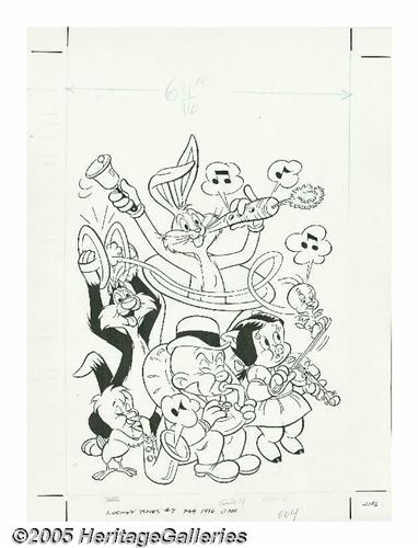 <B>Western Publishing Artist - Looney Tunes Cover Original Art, Group of 4 (Gold Key/Whitman, 1976-77).</B></I> If you love the Warner Brothers 'toon troupe (and who doesn't?), then this is the lot for you! Bugs Bunny, Sylvester, Henery Hawk, Elmer Fudd, Petunia, Tweety, and Porky combine their appearances for a star-studded lot. Included are the covers for <B>Looney Tunes</B></I> #7, 14, 15, and 18. Each cover has an approximate image area of 10" x 15", and the condition of the art is Excellent. <I>From the Random House Archives</B></I>.