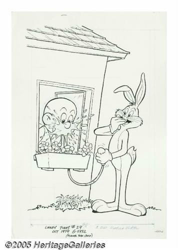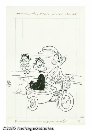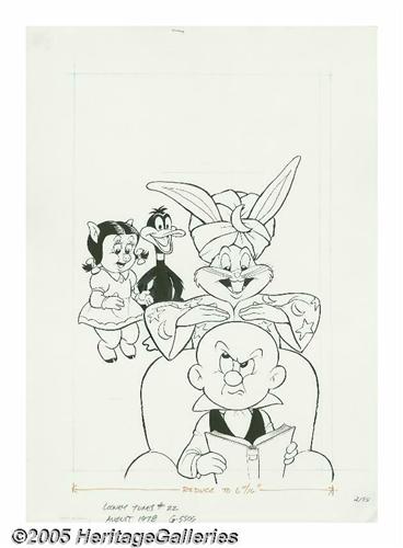 <B>Western Publishing Artist - Looney Tunes Cover Original Art, Group of 4 (Gold Key/Whitman, 1978-79).</B></I> Bugs Bunny, Daffy Duck, Elmer Fudd, and Petunia Pig team up for four side-splitting cover scenes. Included in this lot are the covers for <B>Looney Tunes</B></I> #21, 22, 26, and 29. The image area of each cover is approximately 10" x 15", and the art is in Excellent condition. <I>From the Random House Archives</B></I>.