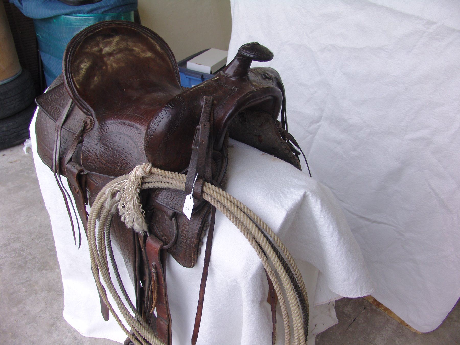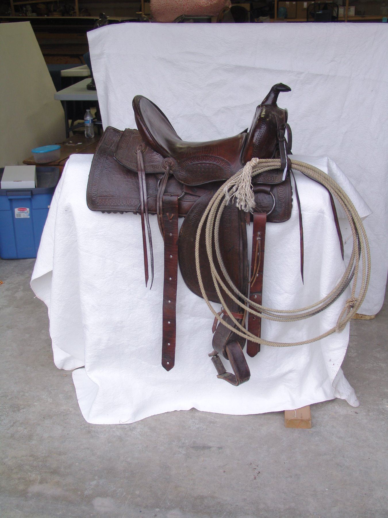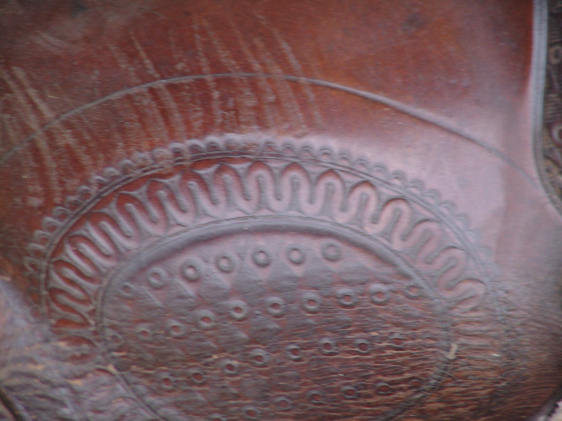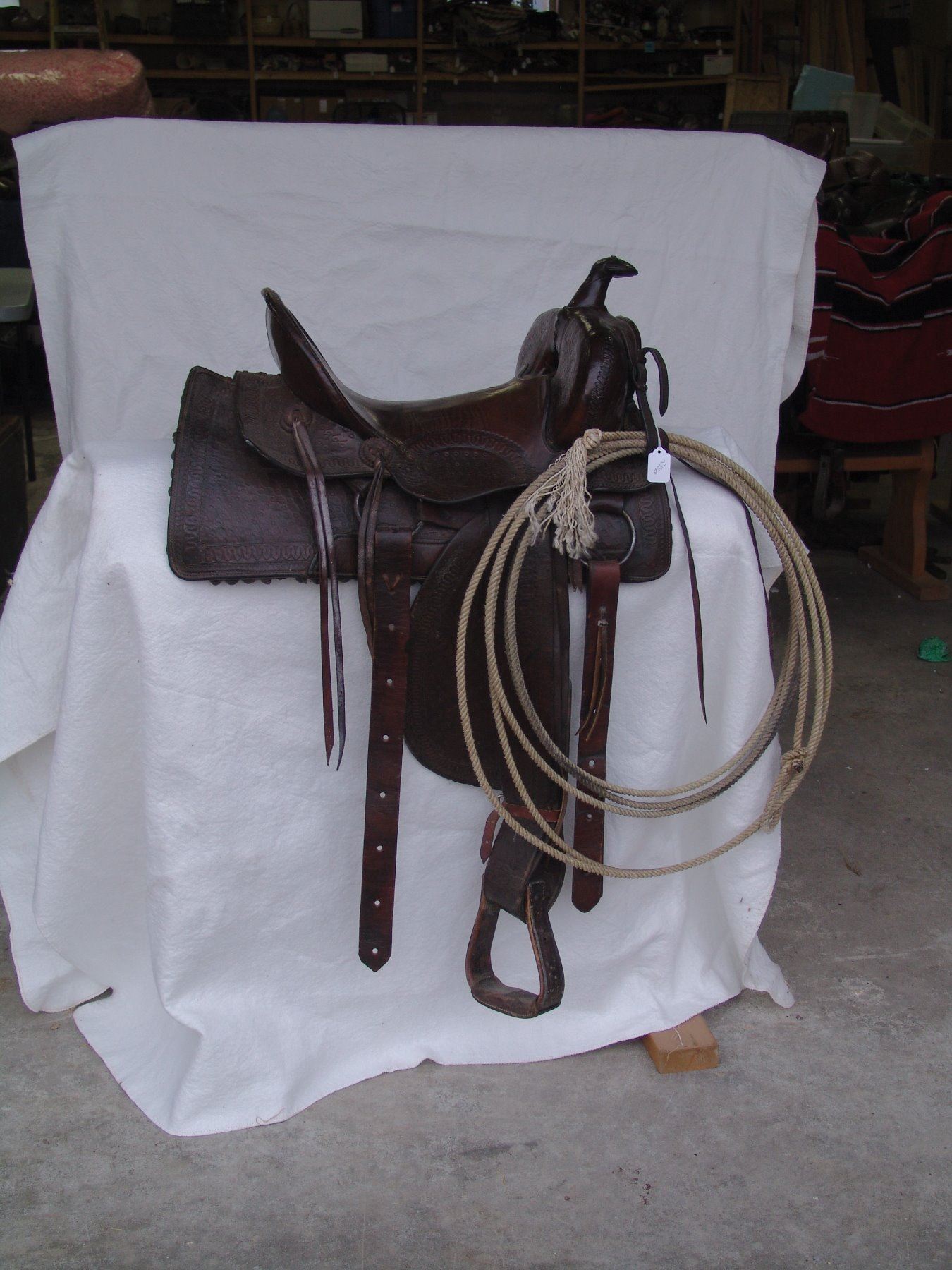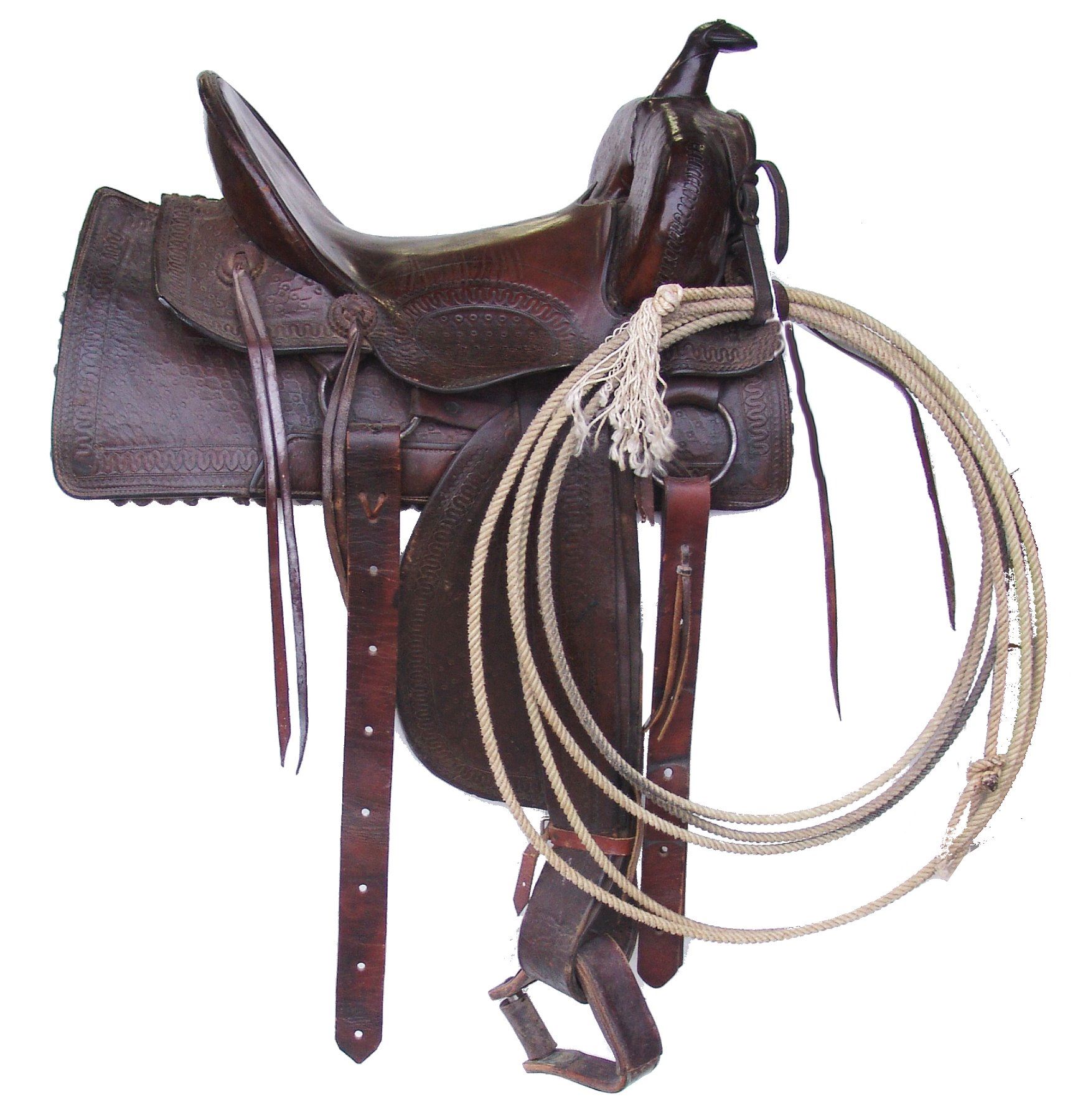Mid/Late 1900s Adult Fully tooled, western pleasure saddle with fancy stitched pommel, square cut skirts, high cantle, and 14" saddle. Maker unknown.