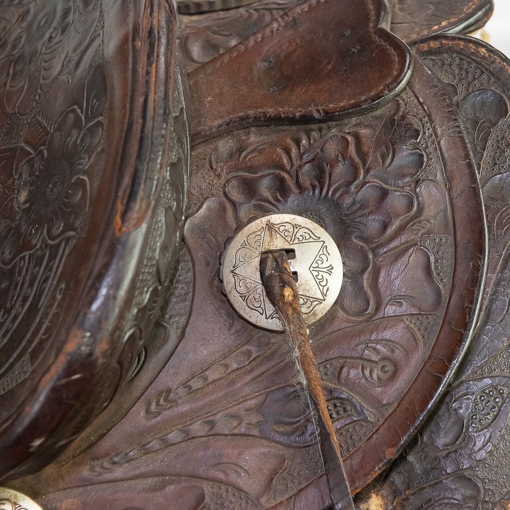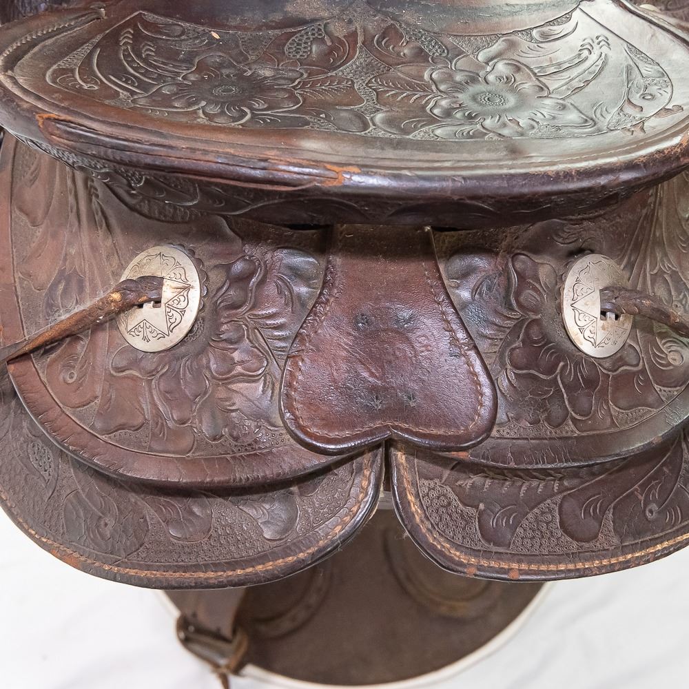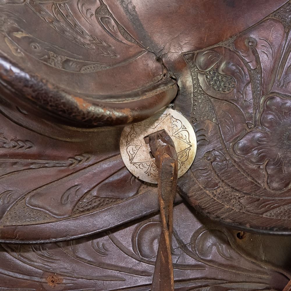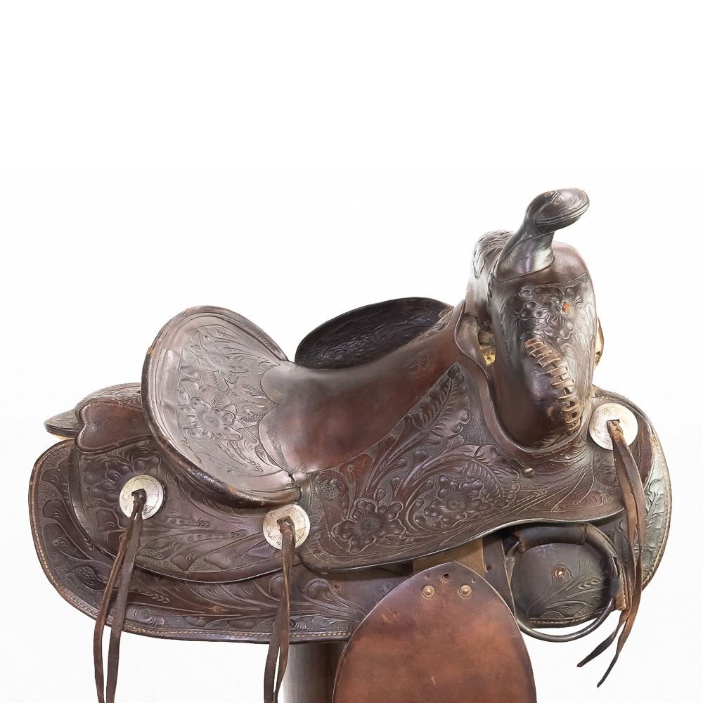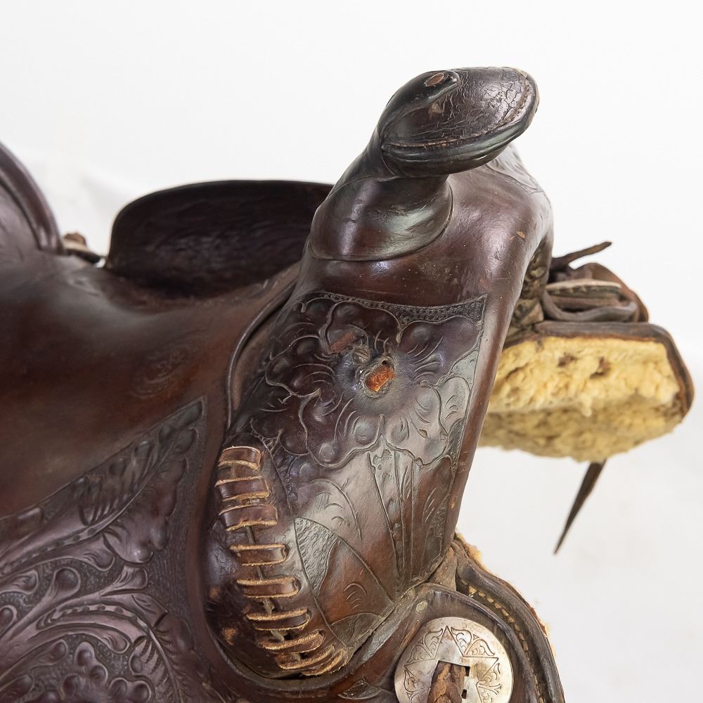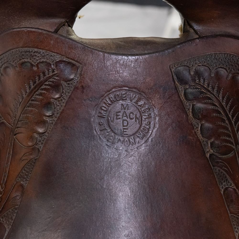 Complete, in overall good condition. Perfect for display or to make into a bar stool. Needs a good cleaning. 13" seat, saddle stand not included. See photos.