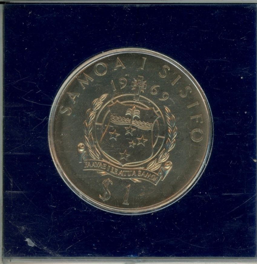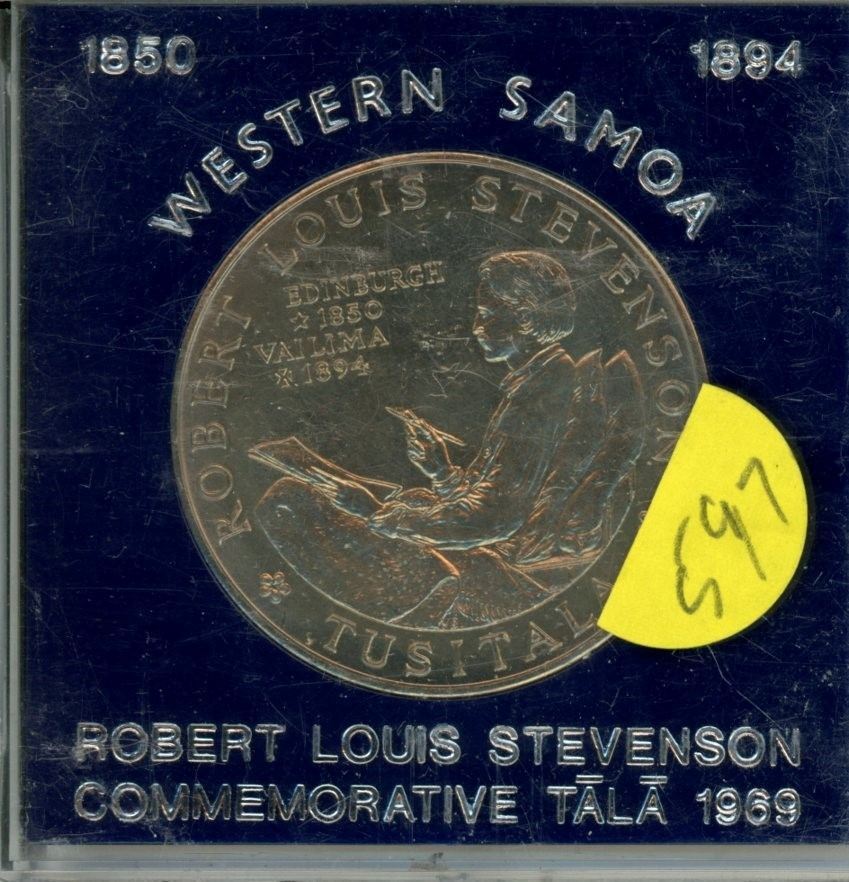 Western Samoa (now just called Samoa) 1969 Tala (Dollar) that depicts author Robert Louis Stevenson. BU. Housed in a custom plastic holder.