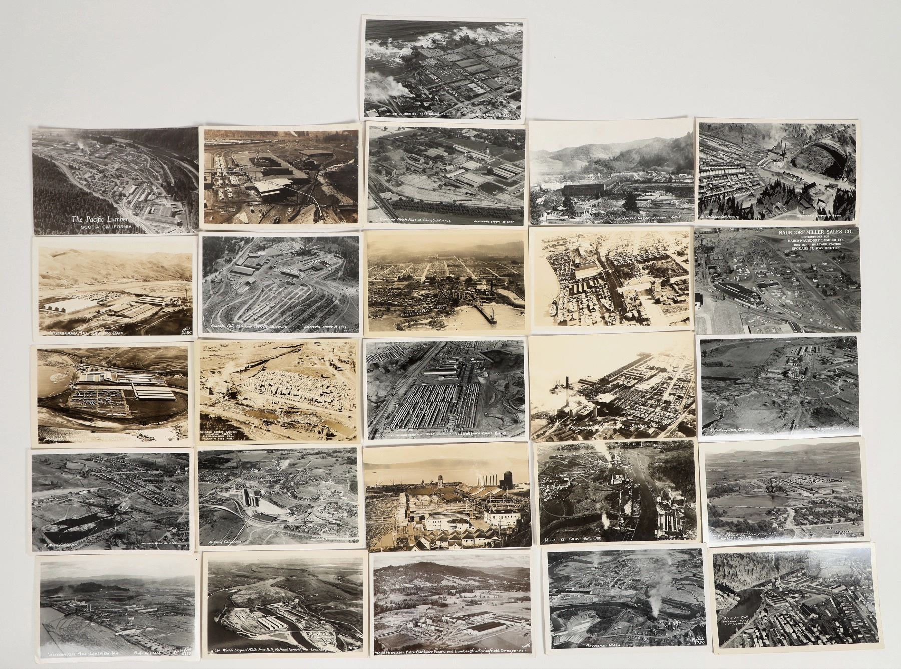 This is a lot of 26 postcards, ALL REAL PHOTO, and no duplications. These postcards show photographs of lumber mills from 5 different U.S states including California, Oregon and Washington. They date from 1919 to 1953.