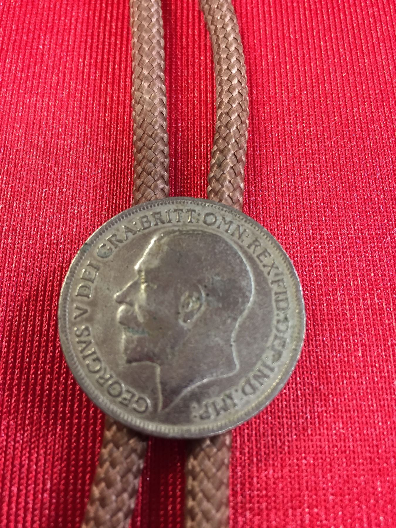 Western String Tie with a British 1 Penny on it. 1917