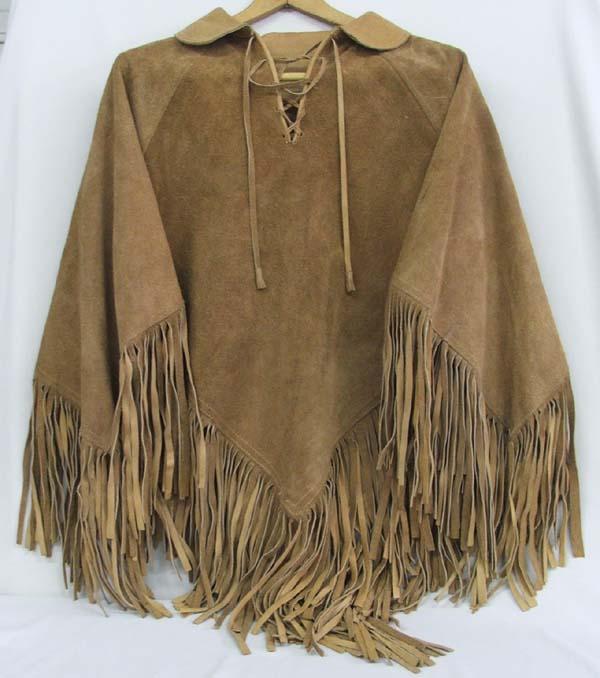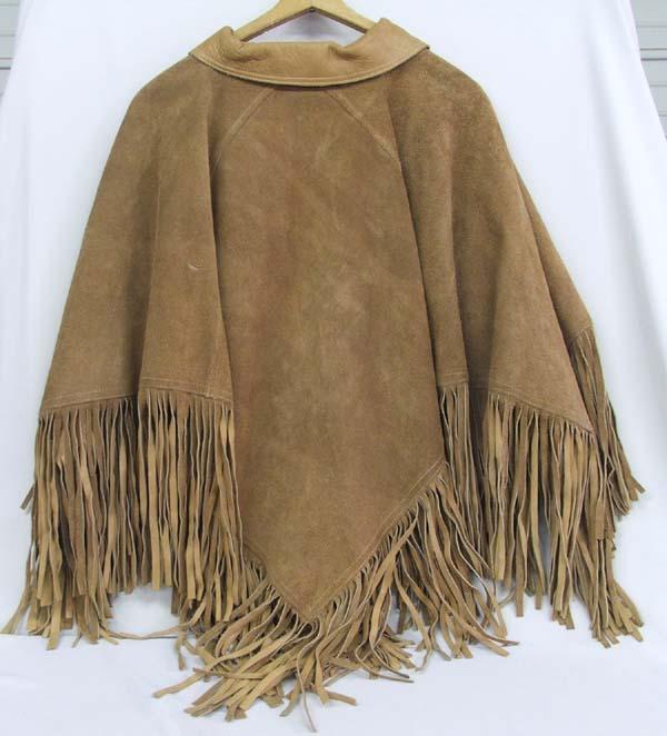 Western Suede Fringed Poncho. Measures approx. 49'' side to side not counting fringe x 24'' top to bottom not counting fringe. Fringe measures approx. 9'' long. Buyers Pay Actual Shipping and Handling Charges(see terms and conditions for more information).
