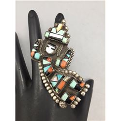 Description: Statement Piece! A large Rainbow Man multi-stone inlay ring. Tested as sterling silver. Goes well with the bracelet in lot 1.