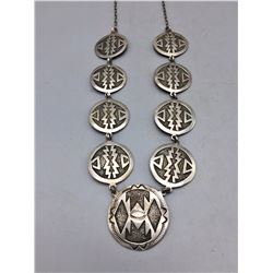 Description: Very nice Zuni multi-stone inlay necklace with a bird motif. Tested as sterling silver. New, old stock. Been in a vault since the 1970s!