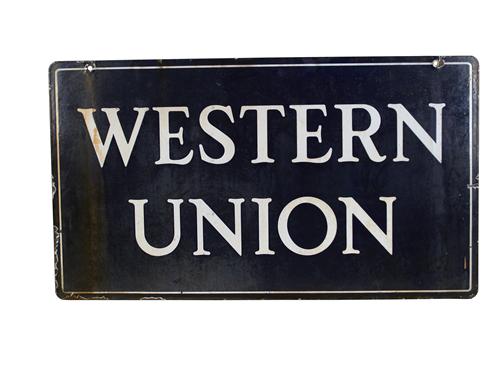 Western Union 2-sided porcelain sign  17 x 30"  good cond