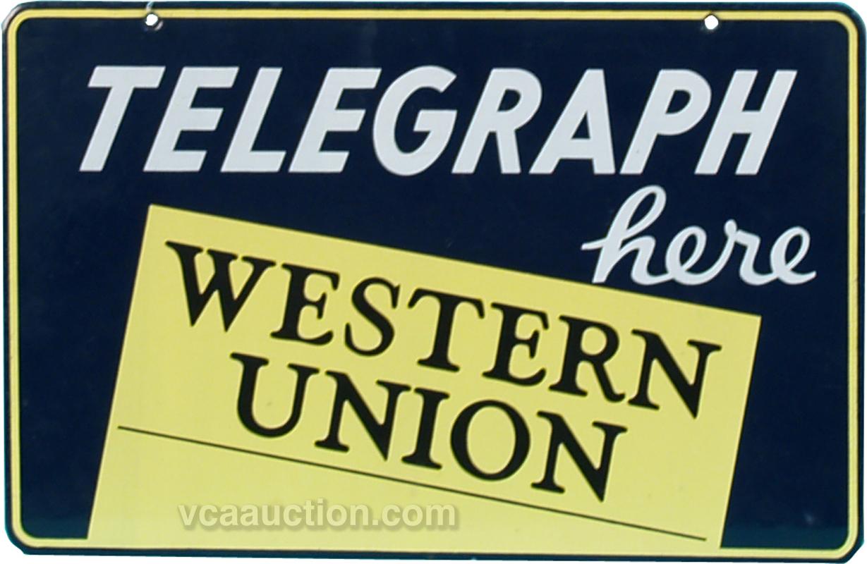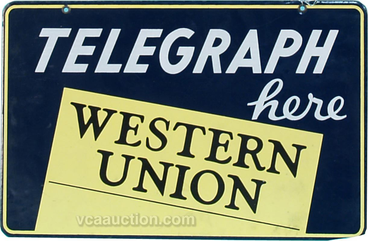 Western Union Double Sided Porcelain Sign "Telegraph Here" - 17" x 11"