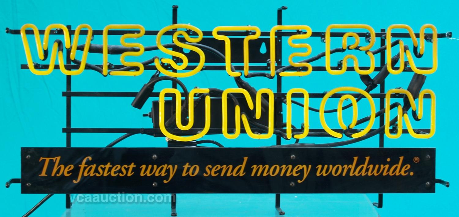 Western Union Neon Sign, "The Fastest Way To Send Money Worldwide." - 33" x 16"