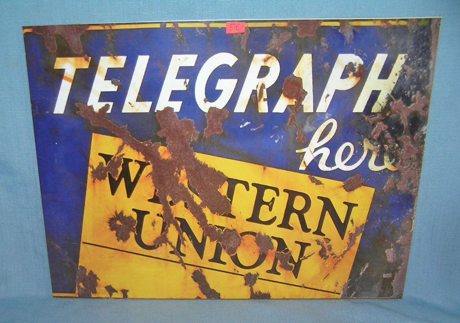 Western Union Telegraph retro style advertising sign printed on PVC hard board these signs are auctioned for there decorative and display purposes 12 inches by 16 inches est. value $50.00-$60.00