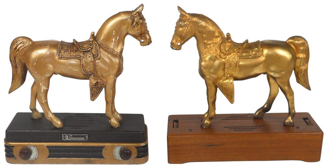 Western horse radios (2), one by Abbotwares, other is unmarked, both in VG untested cond & 13"H.