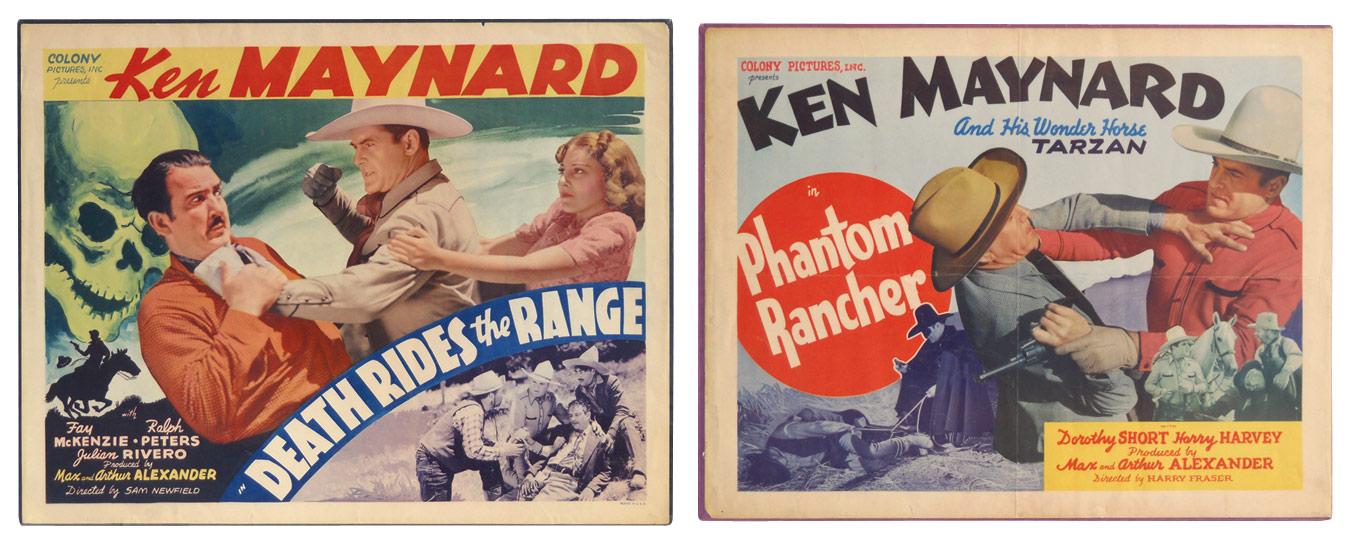 Western movie posters (2), Ken Maynard in "Death Rides the Range" & "Phantom Rancher", both framed,
