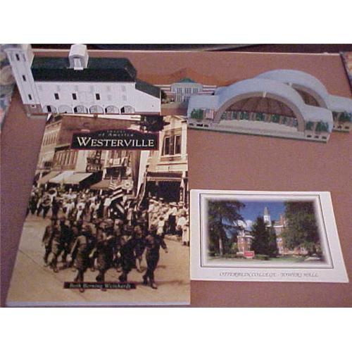 Westerville, Ohio "Images of America" by Weinhardt, 4 Cat's Meows and 6 Otterbein Postcards! What a great retail product for anyone in Westerville, who loves Westerville and who used to live in Westerville! Great Community! 29 9x6.5" soft sided Historical books by Beth Berning Weinhardt with display box that retail for $19.99. 4 Cat's Meows of Everal Barn, Community Center and 2 Alum Creek Park that retail at $20 and 6 Otterbein College Tower's Hall Postcards. Nice Collection! Free delivery to anyone in the Westerville area!