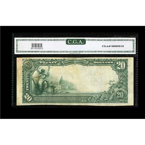 48B. CURRENCY – Notes sold referencing a third-party grading service are sold "as is" without any express or implied warranty, except for a guarantee by Auctioneer that they are genuine. Grading, condition or other attributes of any lot may have a material effect on its value, and the opinion of others, including independent grading services such as PCGS Currency, PMG, and CGA may differ with that of Auctioneer. Auctioneer shall not be bound by any prior or subsequent opinion, determination, or certification by any independent grading service. The grades assigned by any grading service to any note offered in any Heritage Currency Auctions of America sale represent the opinion of that grading service only,and may differ in material respects from the grade assigned to the same note in previous sales by HCAA or other auction companies, or from the grade that would be assigned by any other grading service. HCAA is unable to view any third party graded item outside of the holder, and specifically disclaims any liability of any kind to bidders who bid on third party graded items for mistakes of commission or omission by any grading service. Bidders are hereby notified that currency grading standards have changed in the past and are subject to change in the future, and that the only remedy bidder has with respect to third party graded notes is to deal directly with the grading service certifying the item. Bidders are also advised that Auctioneer makes no representation or guarantee that any item obtained by Bidder will be assigned any particular grade by any particular grading service, and as noted herein, Bidder specifically waives any claim to right of return of any item because of the opinion, determination, or certification, or lack thereof, by any independent grading service. Certain warranties may be available from the grading services and the Bidder is referred to them for further details: Paper Money Guaranty (PMG), PO Box 4711, Sarasota FL 34230; PCGS Currency, PO Box 9458, Newport Beach, CA 92658; Currency Grading & Authentication (CGA), PO Box 418, Three Bridges, NJ 08887.