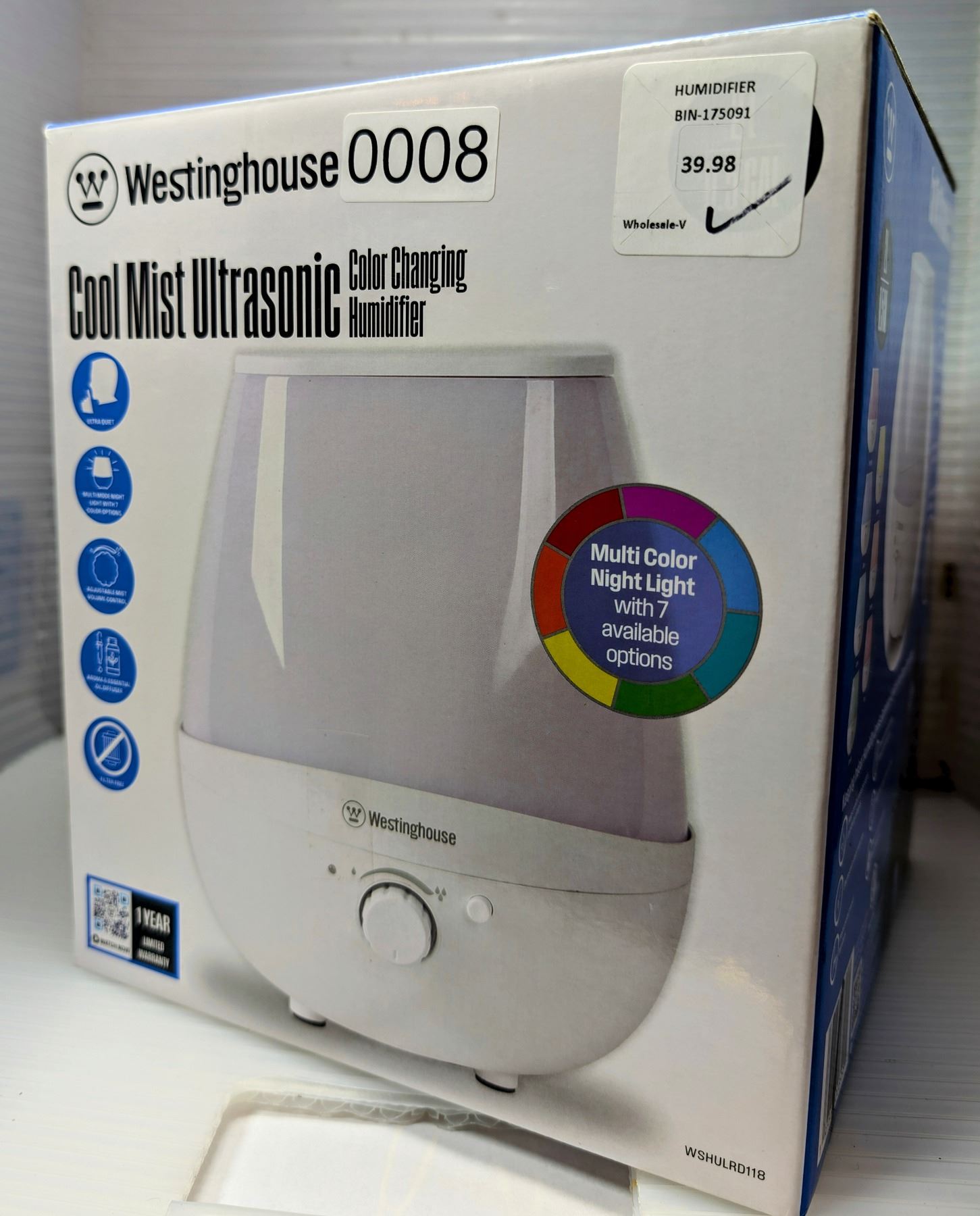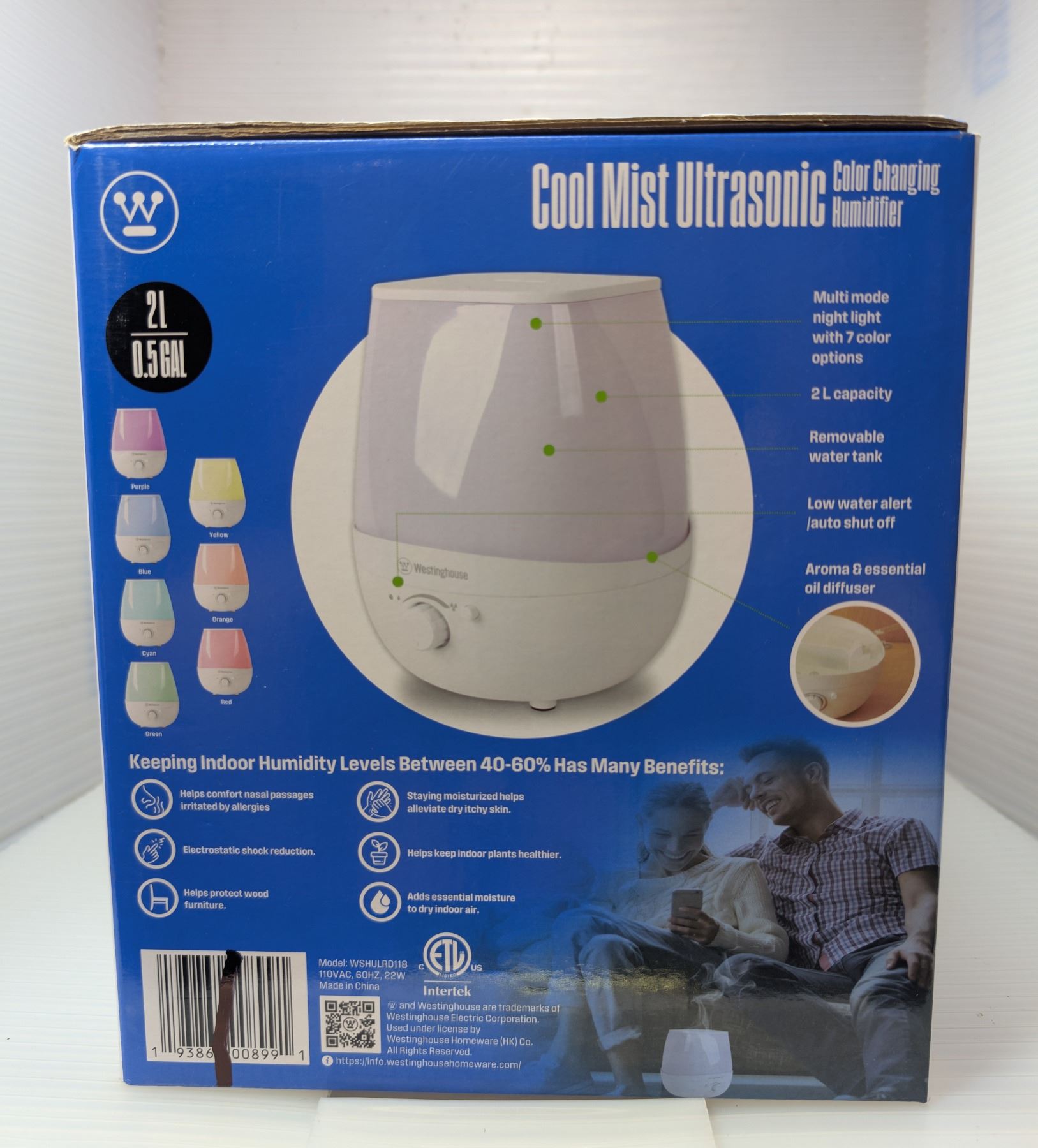 Westinghouse 2L cool mist ultrasonic color changing humidifier (tested working in box)