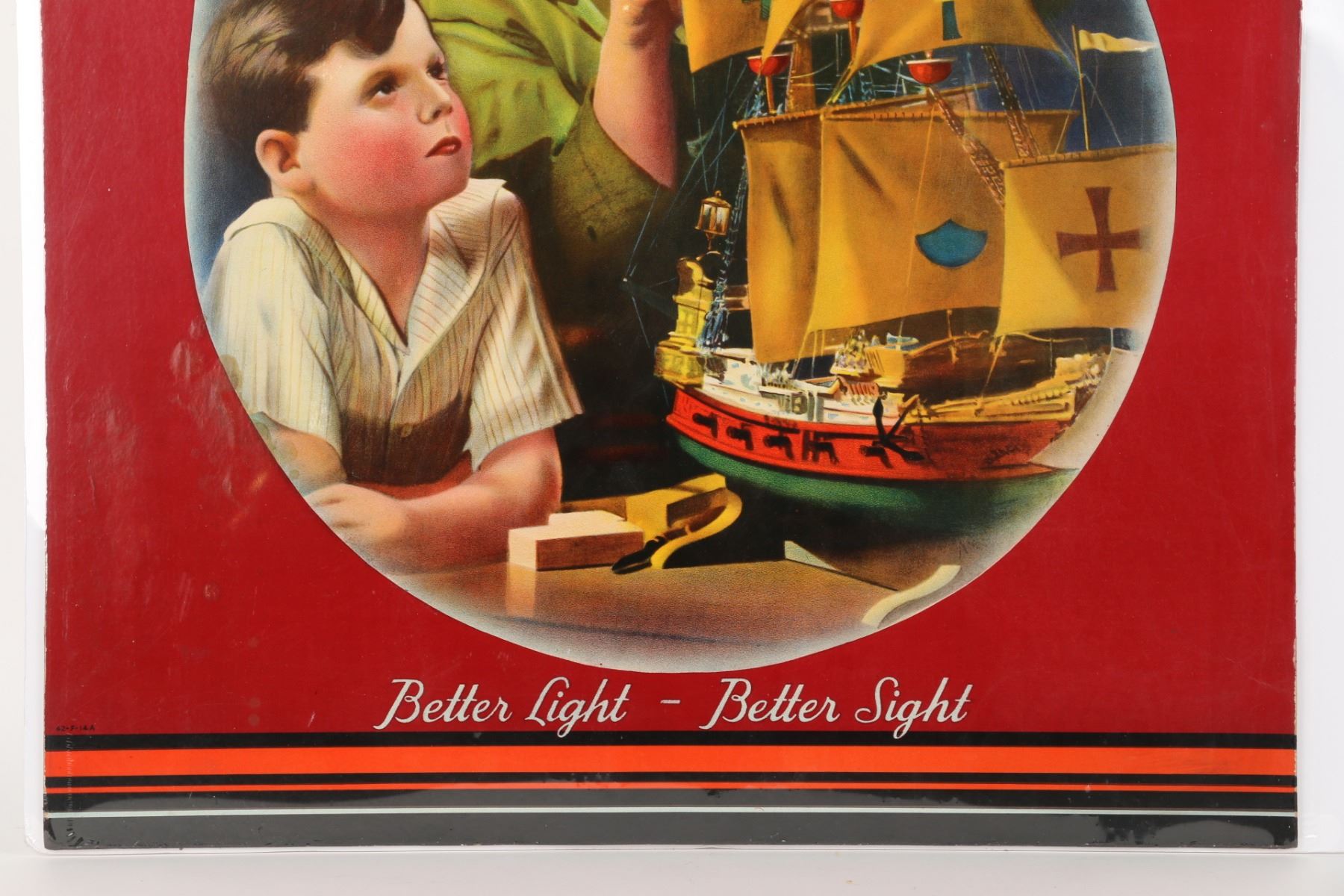 Circa 1942. Heavy die cut cardboard sign. Easel-back store display. 32" x 22". Exceptional condition. No fading, stain, or moisture-related damage. $200-300.