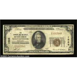 Westminster, MD - $20 1929 Ty. 1 Farmers & Mechanics NB Ch. # 1526A nice Fine example with four smal