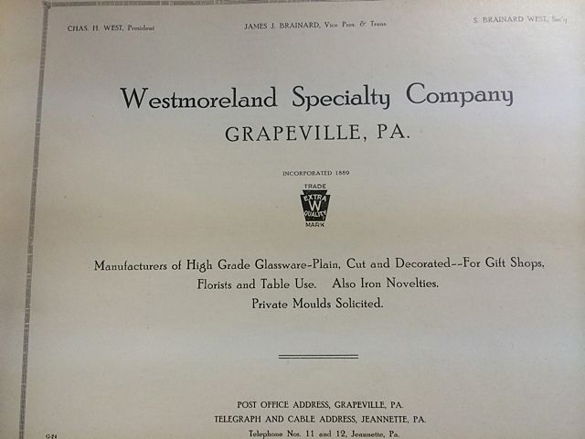 Photo of the Westmoreland Glass Co., 5 Catalogs in excellent condition, including large Bryce Brothers Company Catalog, 1916. 4 catalogs from the Westmoreland Speciality Co.