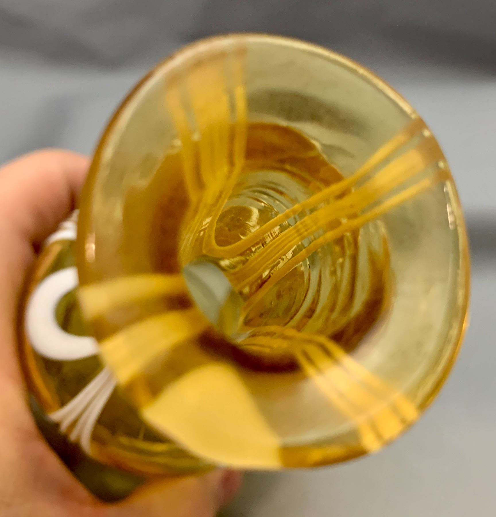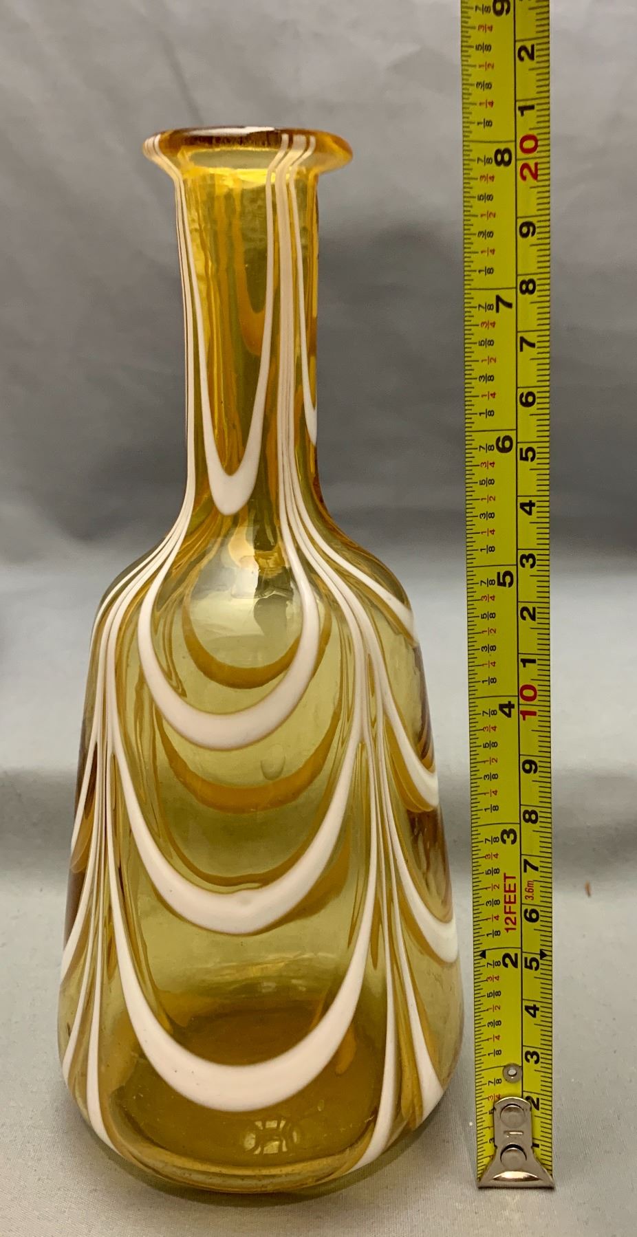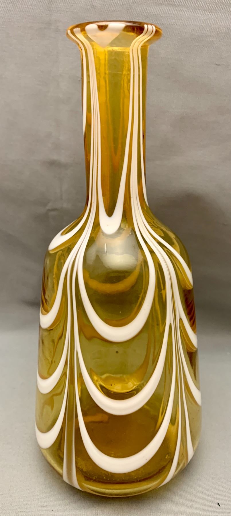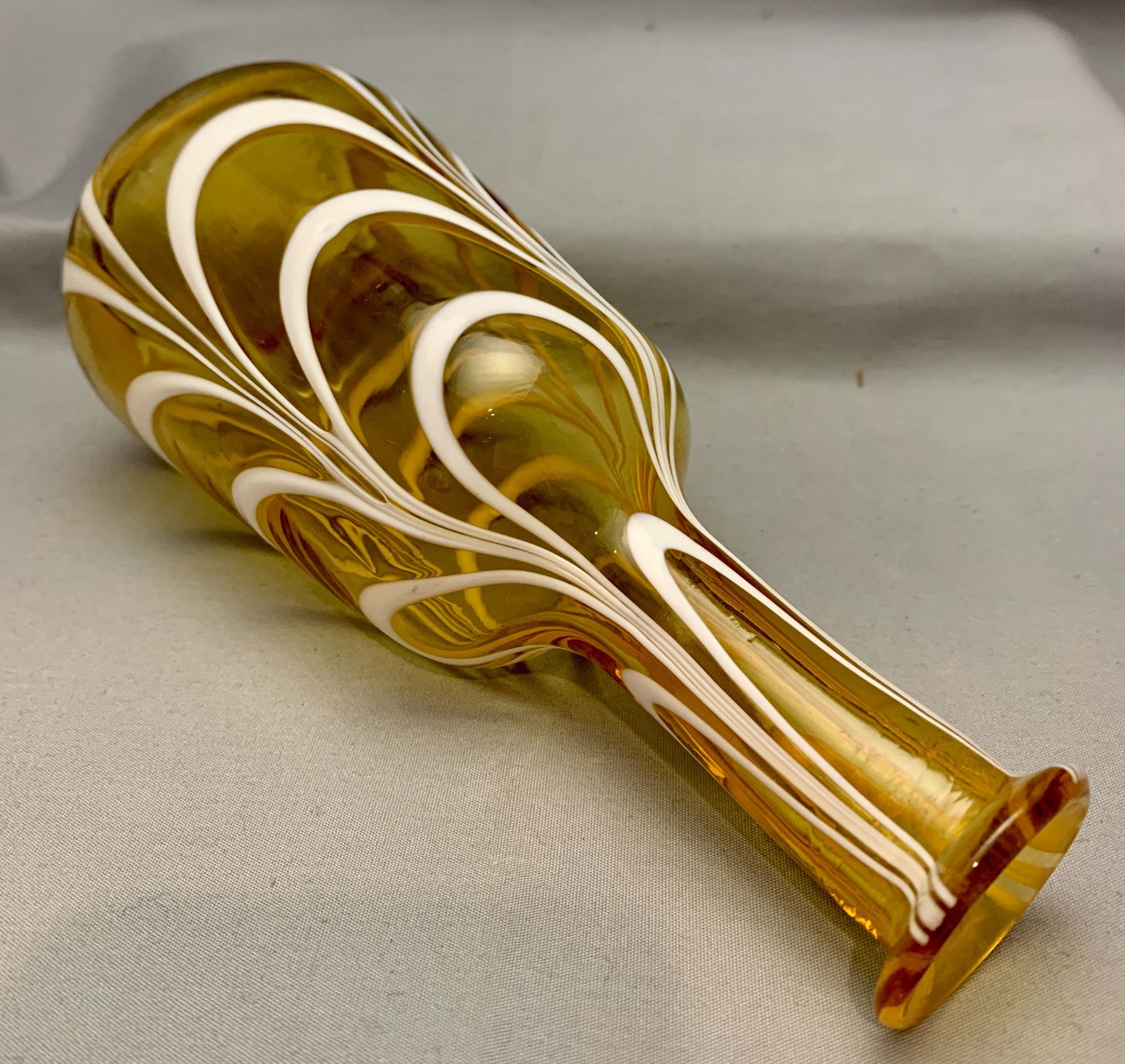 Westmoreland Amber with Drapery Opal Stripes Barber Bottle. Rare Circa 1920's