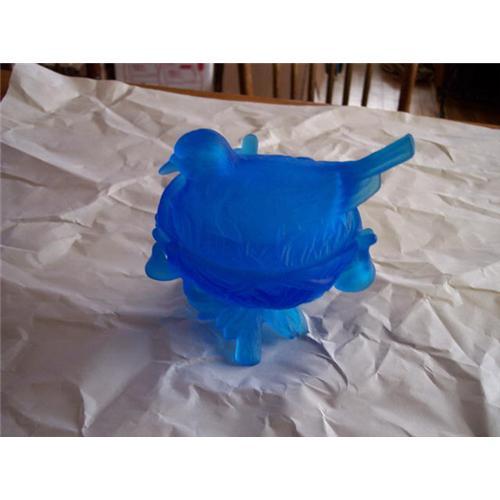 <tr><td>Title:Westmoreland Blue Satin Glass Robin on Nest</td></tr>