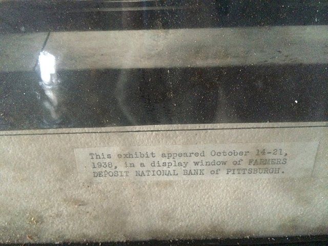 5 framed pieces of Westmoreland Glass Co. Memorabilia including a framed 100 United States Savings Bond Award Special Citation from the U.S. Treasury Department, December 1955; A Christmas showroom photo still with the tag from the original Westmoreland Glass Co. auction, photo of 1938 exhibit of the Farmers Deposit National Bank of Pittsburgh, framed Westmoreland Glass making promo., and photo of Westmoreland Glass showroom.