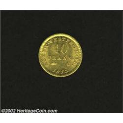 Westphalia. Hieronymous Napoleon Gold 10 Franken 1813C, C32.1. Nice UNC with full mint bloom. One small flan flaw on the obverse at 3 o'clock. A rare gold type in this popular Napoleonic series. Important notice: We expect to be auctioning lots at the rate of 200-250 per hour. Sometimes eBay Premier live bid software cannot keep up with that pace, so we strongly recommend that you place a realistic proxy bid now as insurance to avoid disappointment. Also please note that all Heritage/CAA lots purchased through eBay Premier carry a 20% Buyer's Premium. Please make sure you read the Terms and Conditions.