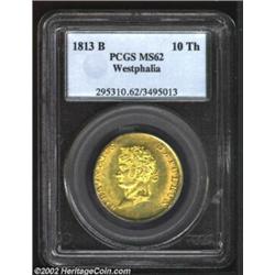 Westphalia. Hieronymus Napoleon Gold 10 Thaler 1813B, KM16a, MS62 PCGS. Important notice: We expect to be auctioning lots at the rate of 200-250 per hour. Sometimes eBay Premier live bid software cannot keep up with that pace, so we strongly recommend that you place a realistic proxy bid now as insurance to avoid disappointment. Also please note that all Heritage/CAA lots purchased through eBay Premier carry a 20% Buyer's Premium. Please make sure you read the Terms and Conditions.
